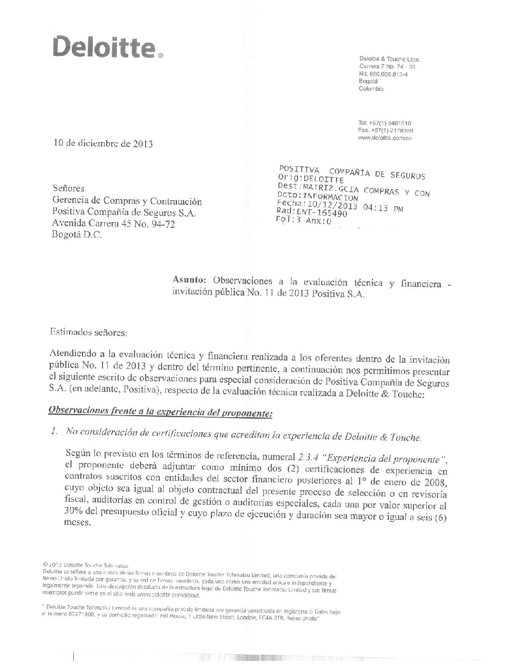 OBSERVACIONES Y RESPUESTAS A LA EVALUACIÒN TECNICA Y ECONOMICA INVITACION 11 DE 2013.pdf