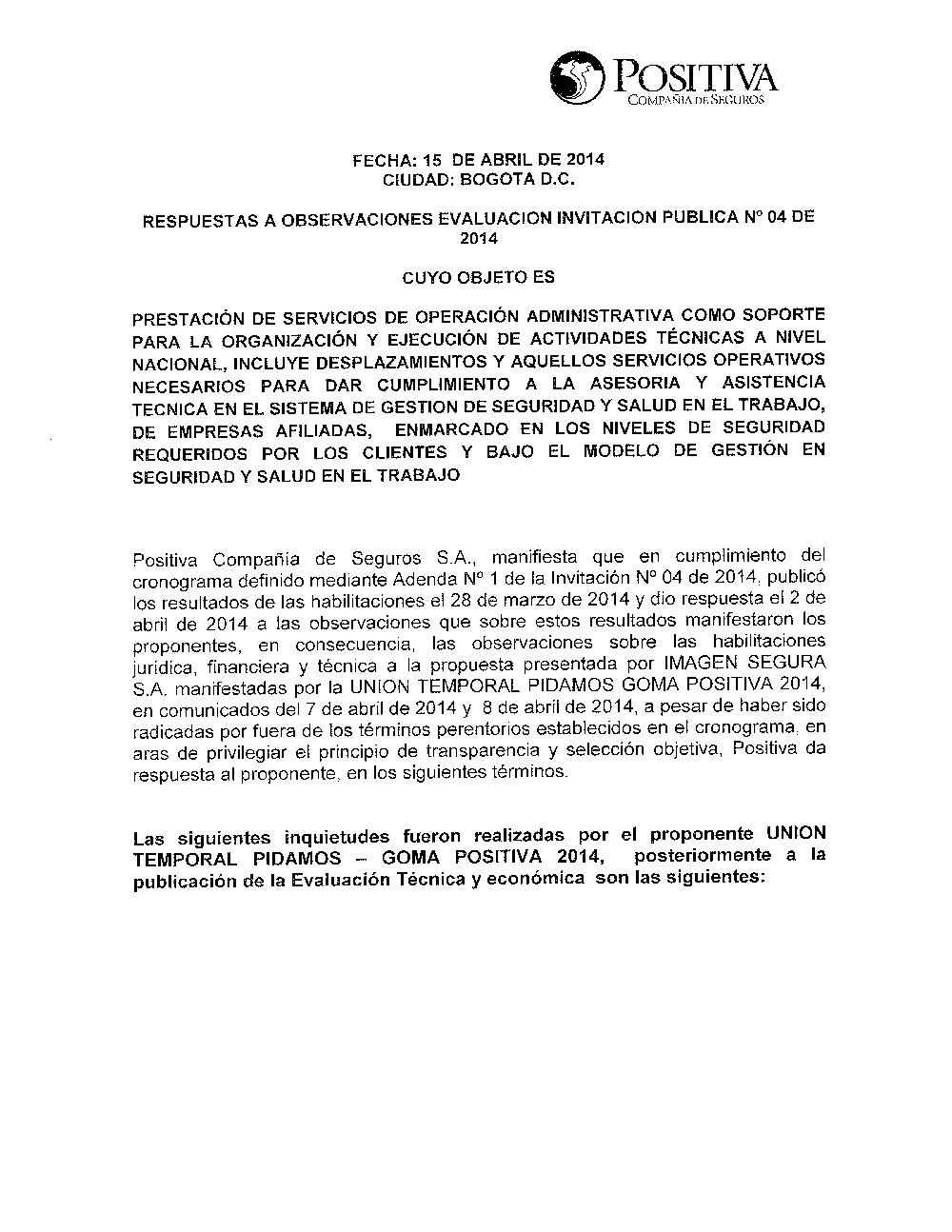 RESPUESTAS OBSERVACIONES EVALUACION INVITACION PUBLICA 4 DE 2014.pdf